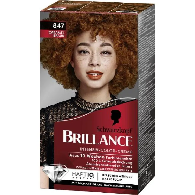 Choose BRILLANCE 847 Caramel Brown for a stunning, long-lasting, and nourishing hair color experience.